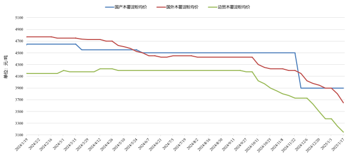 圖3  2024年1月份以來中國各類木薯淀粉均價變化情況