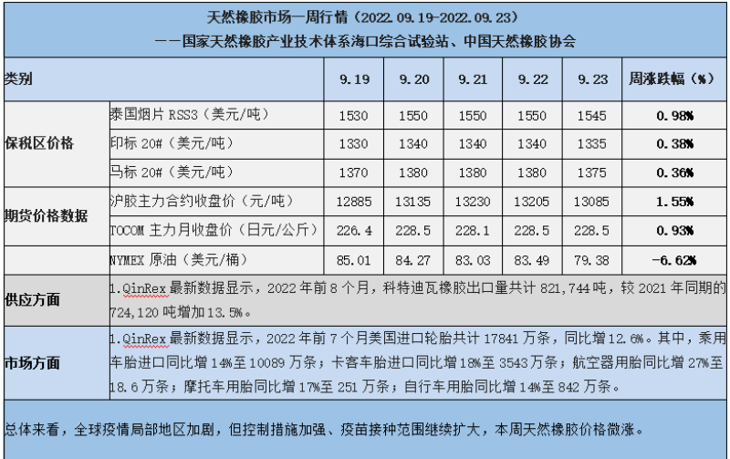 天然橡膠、大豆、玉米市場一周行情(2022.09.19-09.23)