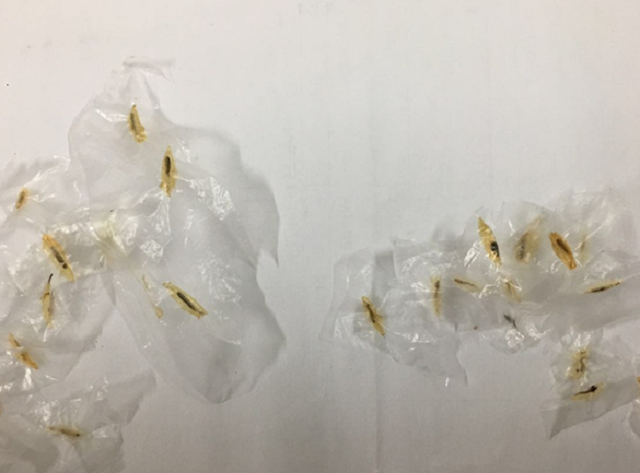 將被害的花穗用報(bào)紙包好,靜待其化蛹