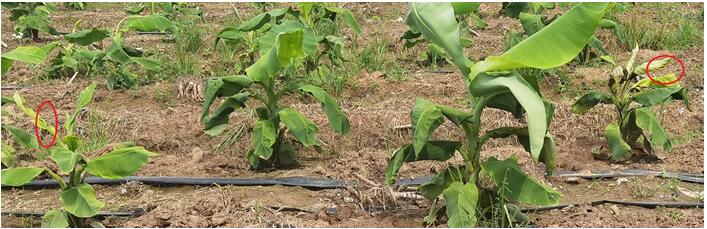 香蕉病蟲害防控項目專家組提醒產(chǎn)區(qū),應加強蕉園苗期花葉心腐病的防控。
