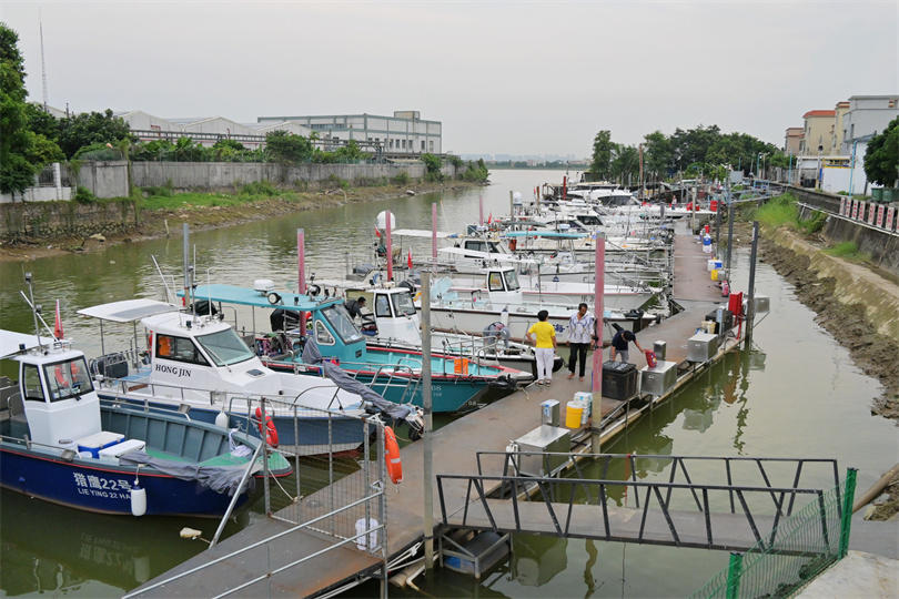 位于磨刀門水道邊上的神溪村“漁家樂(lè)”海釣游艇碼頭。 (攝影|繆曉劍)