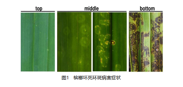 當(dāng)前,海南定安、瓊海、萬寧、瓊中、陵水、保亭等主產(chǎn)區(qū)的檳榔正處于果實(shí)的采收期和新苗的定植期,果園內(nèi)溫度適宜、濕度適中,利于傳播檳榔壞死環(huán)斑病毒的刺吸式傳毒昆蟲的生長(zhǎng)繁殖,易造成檳榔壞死環(huán)斑病害的大面積流行。該病害發(fā)病初期在新葉基部隱約可見褪綠環(huán)斑,逐漸在中部及底部葉片出現(xiàn)壞死環(huán)斑(見圖),直至葉片徹底壞死。發(fā)病檳榔的葉片稀疏、下垂或伴有黃化現(xiàn)象,嚴(yán)重影響檳榔長(zhǎng)勢(shì)及果實(shí)產(chǎn)量。