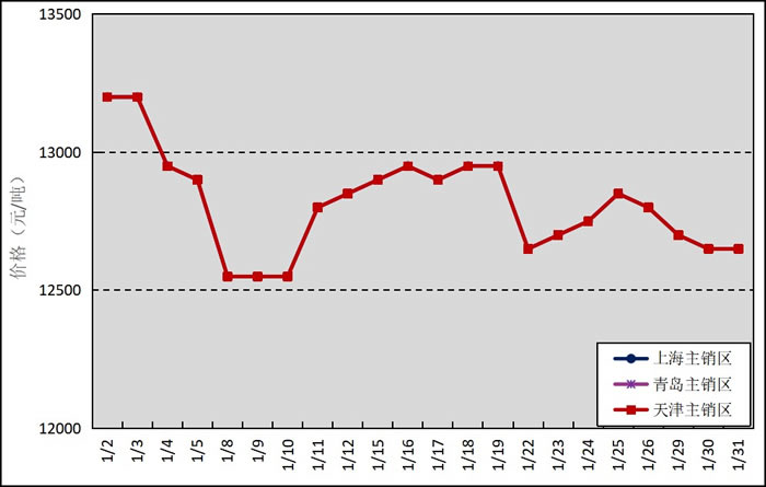 國(guó)內(nèi)主銷(xiāo)區(qū):1月,國(guó)產(chǎn)全乳標(biāo)準(zhǔn)膠上海市場(chǎng)平均價(jià)格12816元/噸,環(huán)比上漲202元/噸,最高價(jià)為13200元/噸,最低價(jià)為12550元/噸;青島市場(chǎng)平均價(jià)格12816元/噸,環(huán)比上漲202元/噸,最高價(jià)為13200元/噸,最低價(jià)為12550元/噸;天津市場(chǎng)平均價(jià)格12816元/噸,環(huán)比上漲202元/噸,最高價(jià)為13200元/噸,最低價(jià)為12550元/噸。