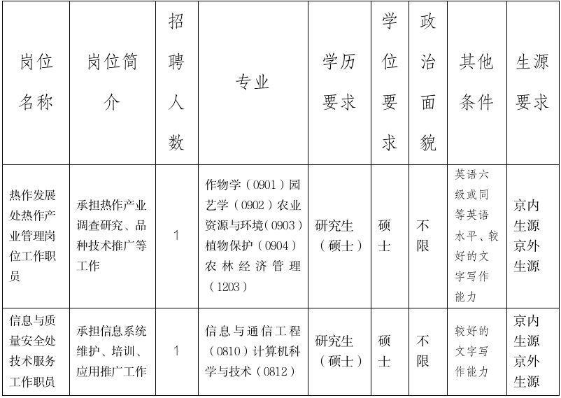 6.根據北京市疫情防控要求,我單位將隨時調整招聘工作有關安排。請考生及時關注中國農業(yè)農村人才網、中國農墾(熱作)網相關信息。