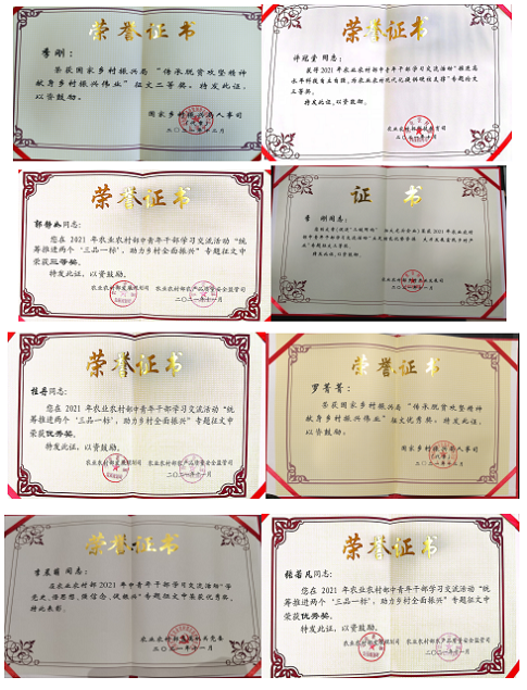 10. 在2021年農(nóng)業(yè)農(nóng)村部中青年干部交流論壇中,中國農(nóng)墾經(jīng)濟發(fā)展中心分獲專題二及專題三優(yōu)秀組織單位;青年同志累計投稿27篇,獲獎16項,其中,鐘鑫、桂丹、李瀟、馬晨雨、郭靜如、季剛獲得二等獎;許冠堂、郭靜如、季剛獲得三等獎;桂丹、羅菁菁、李晨萌、張若凡獲得優(yōu)秀獎;鐘鑫還獲得專題七演講比賽二等獎。在“永遠跟黨走”農(nóng)業(yè)農(nóng)村部慶祝中國共產(chǎn)黨成立100周年職工書畫攝影展中,羅菁菁同志獲得“攝影類三等獎”。