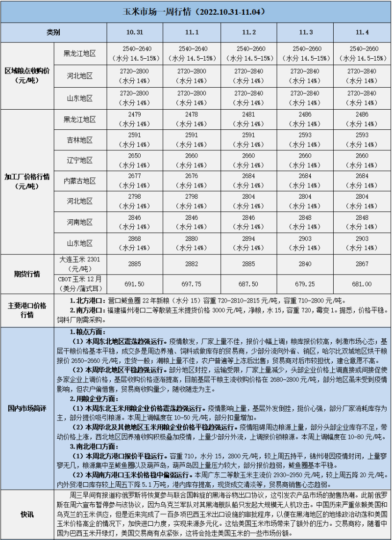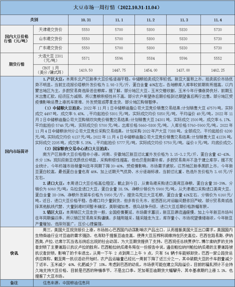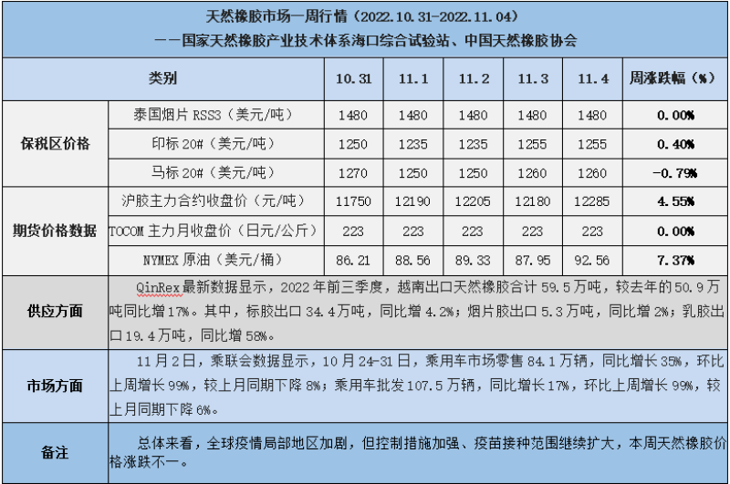 天然橡膠、大豆、玉米市場一周行情(2022.10.31-11.04)