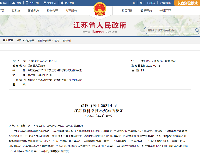 蘇墾農(nóng)發(fā)榮獲2021年度江蘇省科學技術(shù)二等獎