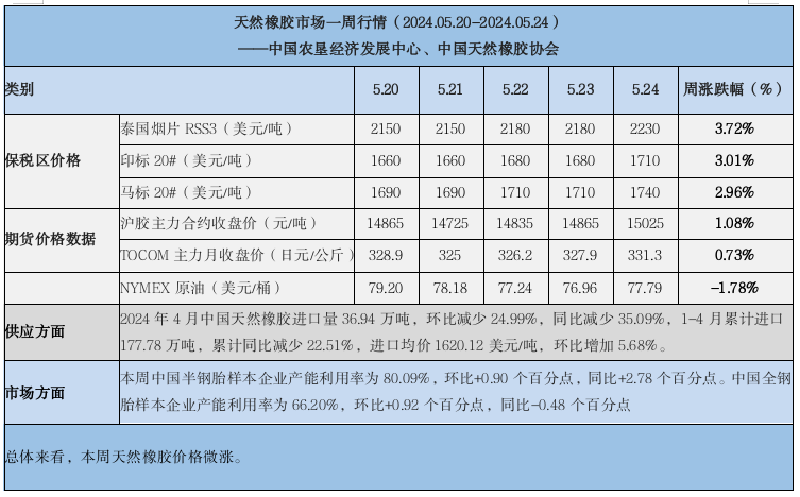 天然橡膠、大豆、玉米市場(chǎng)一周行情(2024.05.20-05.24)