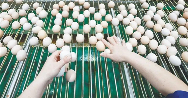 3月30日,在澄邁縣福山鎮(zhèn)的海南農(nóng)墾300萬(wàn)只蛋雞全產(chǎn)業(yè)鏈(一期)項(xiàng)目的產(chǎn)蛋雞場(chǎng),一按按鈕,雞舍蛋槽中一個(gè)個(gè)雞蛋就會(huì)通過(guò)傳輸帶收集送至車間。在車間里,隨著傳送帶自動(dòng)運(yùn)轉(zhuǎn),一顆顆新鮮的雞蛋經(jīng)過(guò)初篩、清洗、烘干、檢測(cè)、消毒等環(huán)節(jié),被自動(dòng)化分級(jí)。
