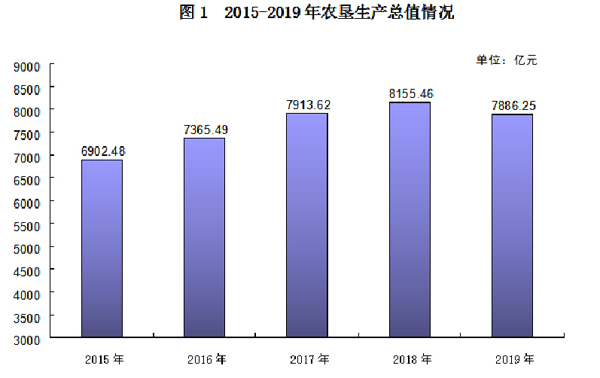 全年實現(xiàn)農(nóng)業(yè)總產(chǎn)值3862.05億元,比上年增長1%。其中:種植業(yè)產(chǎn)值2365.60億元,林業(yè)產(chǎn)值98.58億元,畜牧業(yè)產(chǎn)值889.51億元,漁業(yè)產(chǎn)值273.83億元,其他輔助性活動產(chǎn)值234.53億元。