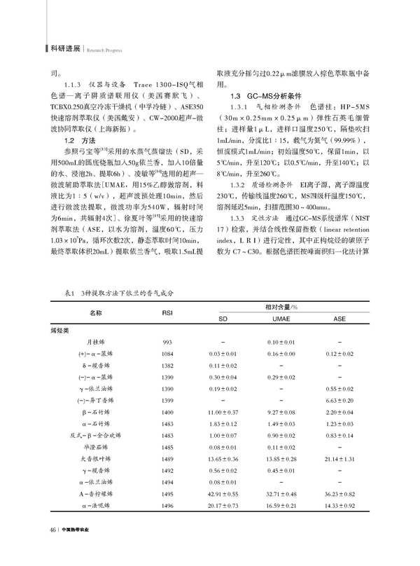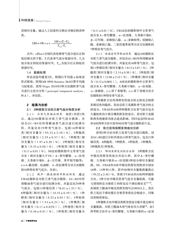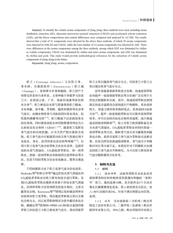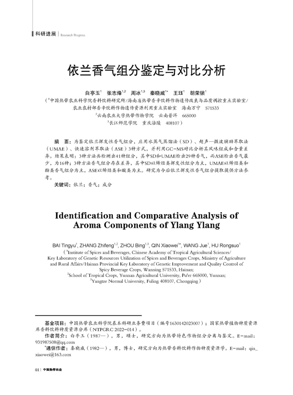 依蘭香氣組分鑒定與對比分析