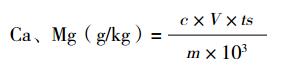 式中:c 從標準曲線查得的顯色液 Ca、Mg 的質(zhì)量濃度(mg/mL);V 顯色液體積(mL);ts 分取倍數(shù);m 干樣品質(zhì)量(g);103 克換算成毫克。