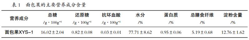 2.1  面包果果肉主要營養(yǎng)成分含量