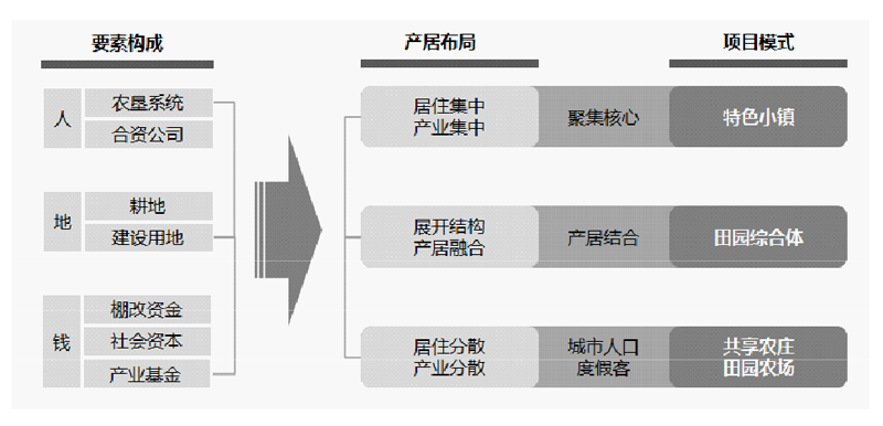 對(duì)于農(nóng)場(chǎng)相對(duì)集中的墾區(qū),可以打造一種展開(kāi)結(jié)構(gòu)的產(chǎn)居融合,形成以田園綜合體為載體的發(fā)展模式。